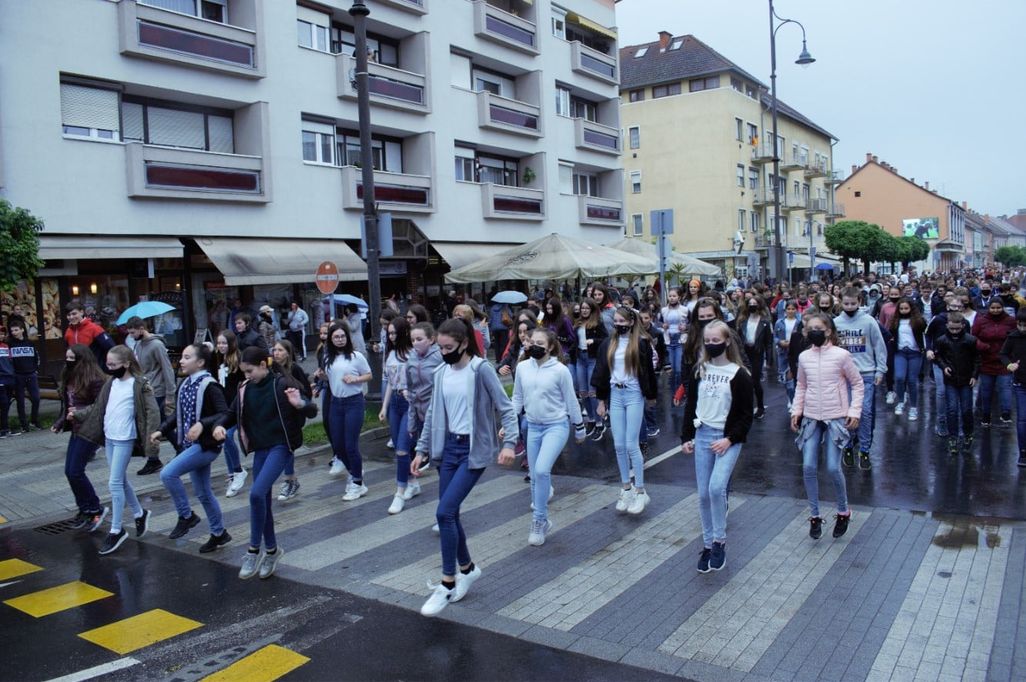 A Széchenyi István Általános Iskola és a Vörösmarty Mihály Gimnázium tanulói és tanárai közös táncprodukcióval léptek fel a főtéren.